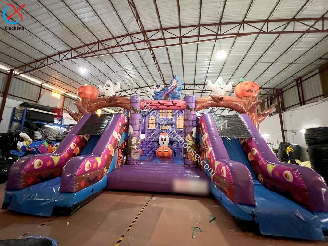 Komercyjny podkładany miasto zabaw Halloween Dumpkins Purple Podkładany zamek