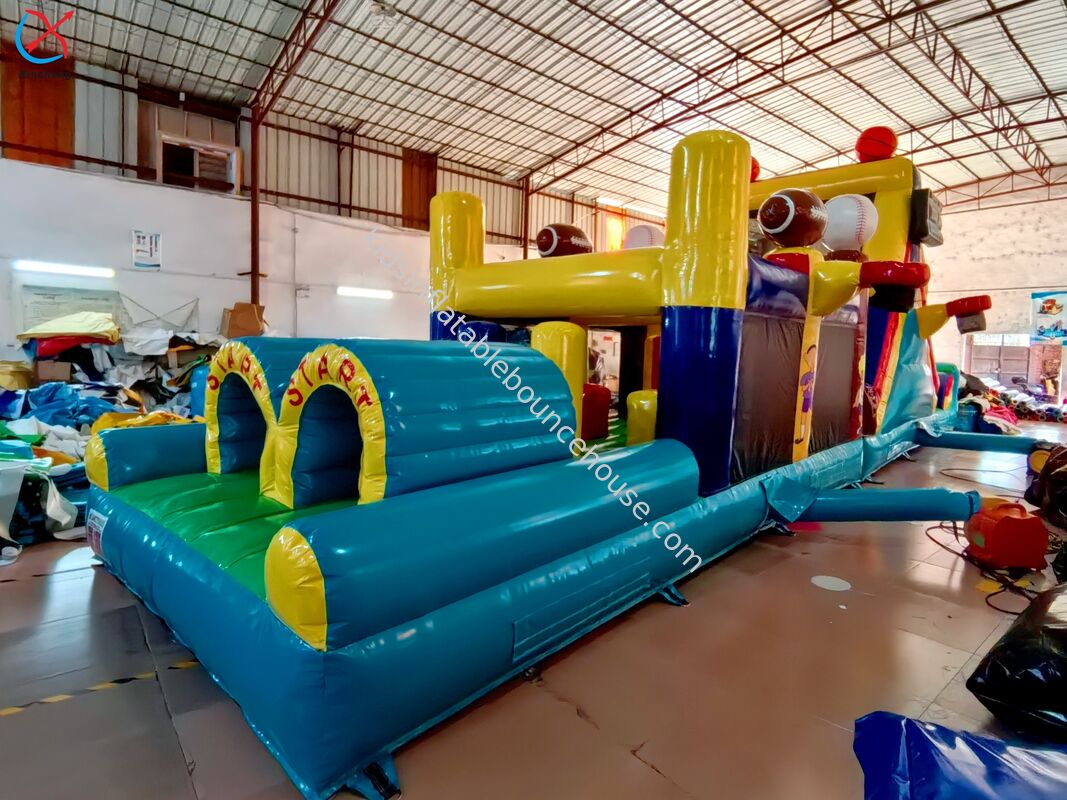 Komercyjny długotrwały tor przeszkód Zamek Sport Płynny tor przeszkód ze zjeżdżalnią