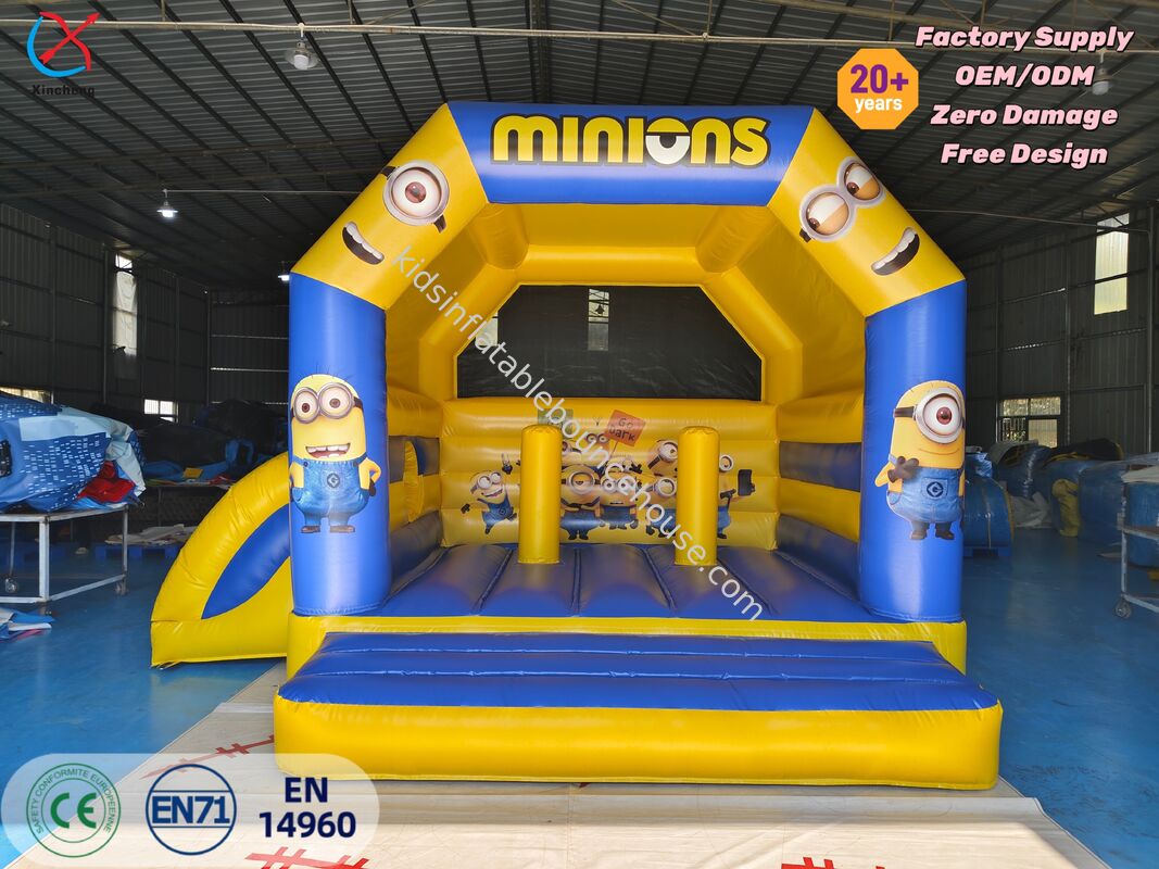 Ten jaskrawożółty dmuchany zamek do skakania z motywem Minionków posiada wbudowaną zjeżdżalnię, zapewniając ekscytującą rozrywkę na imprezach plenerowych i uroczystościach. Konstrukcja klasy komercyjnej zapewnia bezpieczne skakanie i zjeżdżanie dla dzieci w każdym wieku.