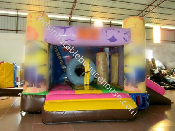 Ten komercyjny, nadmuchany domek ma żywy niebiesko-żółty design z podwójnymi slajdami, tworząc idealne rozwiązanie rozrywkowe dla dziecięcych imprez i uroczystości.Zbudowany dla bezpieczeństwa i trwałości.
